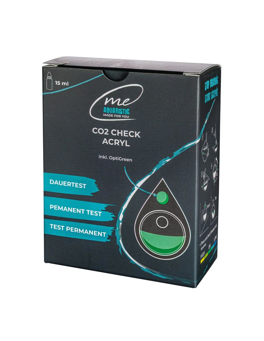 Le Me CO2 Check Acryl est un kit drop checker pratique pour contrôler le taux de CO2 dans l’aquarium. Il se compose d’un support robuste en acrylique et d’une bulle en verre qui se remplit avec le liquide test fourni.