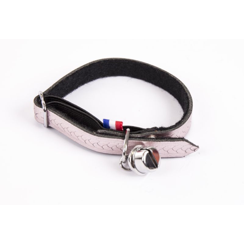 Ce collier pour chat associe confort et style grâce à son cuir très souple doublé en feutrine, offrant une agréable sensation autour du cou de votre animal. Son joli effet métallisé et son motif tressé apportent une touche élégante et originale. Pratique, il est équipé d'un grelot pour localiser facilement votre chat.